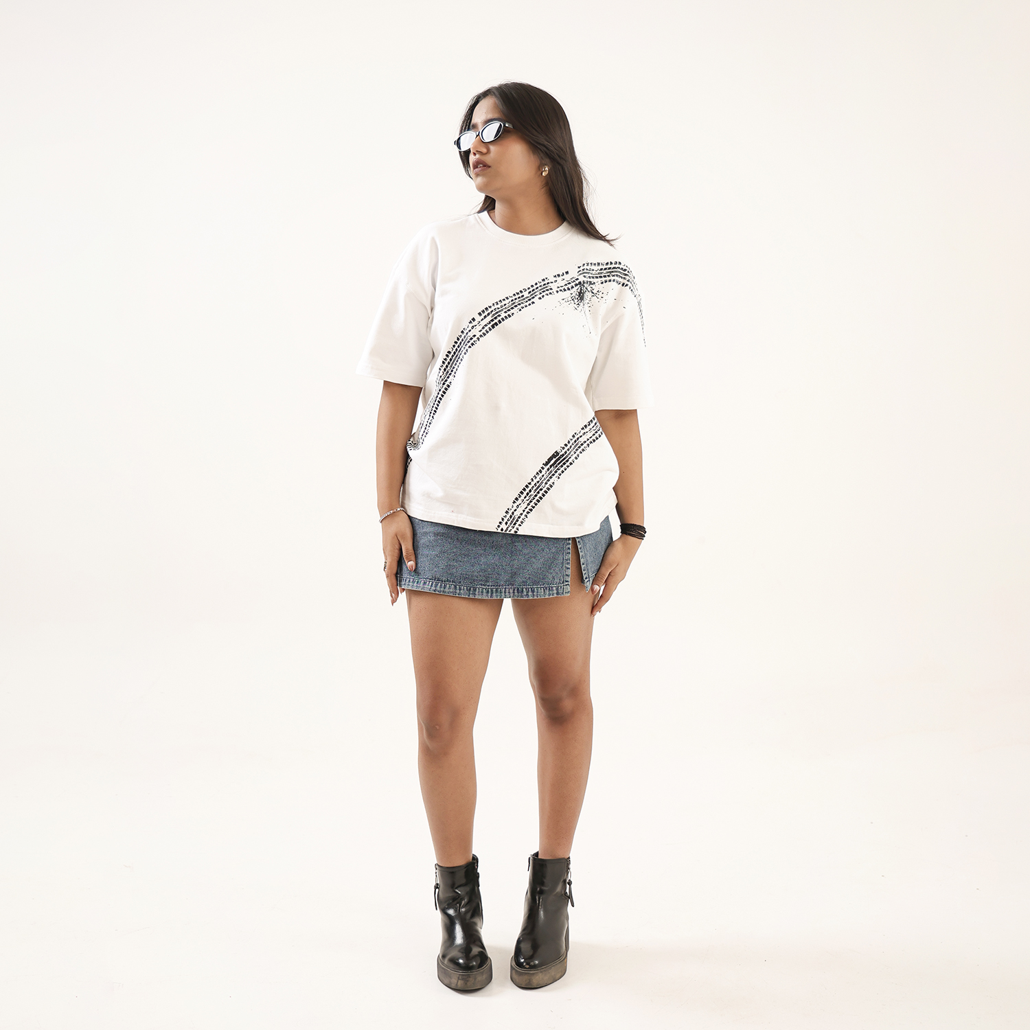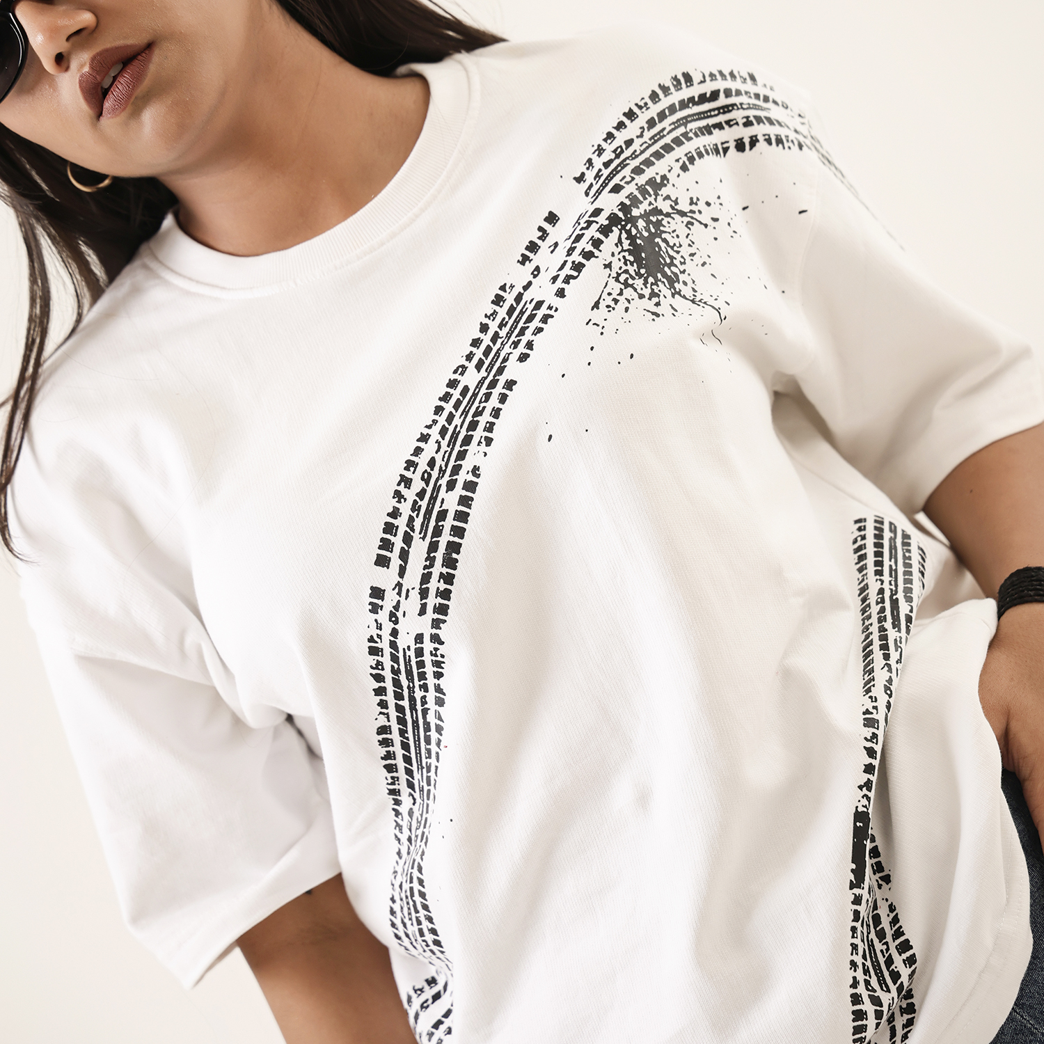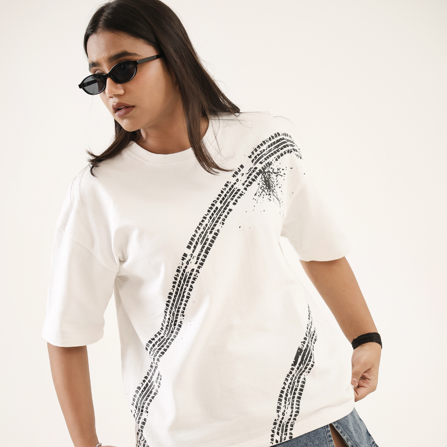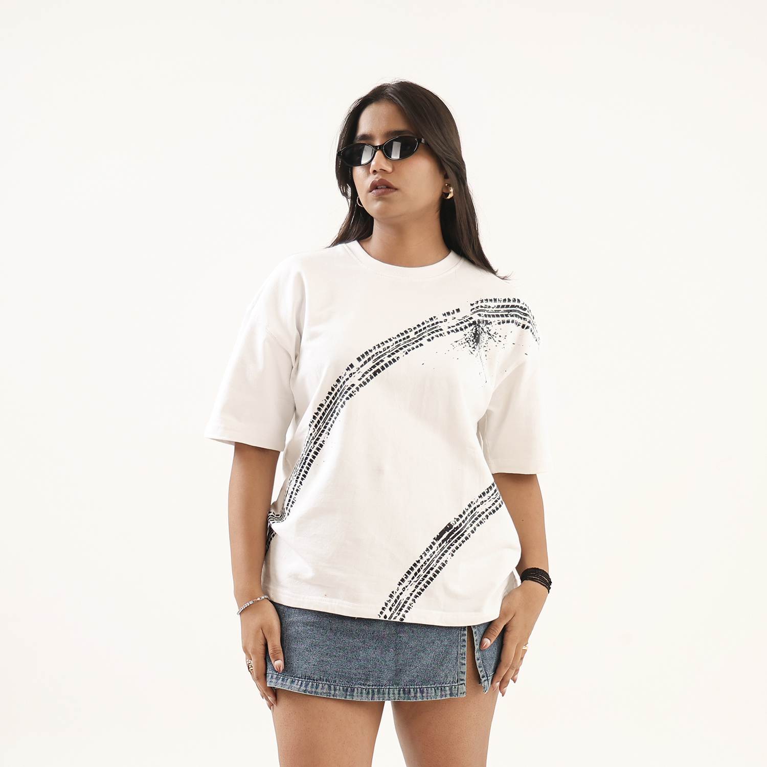 Dune Drip captures unapologetic thrill in this “Overspeed” tee, a nod to adrenaline junkies who live beyond limits. The off-white oversized shirt boldly declares “I like overspeed, sorry mama” in raw, graffiti-style script, accented by sweeping black tire skid marks that evoke high-speed chaos and street rebellion. It’s subtle swagger wrapped in premium comfort for the fearless driver within.